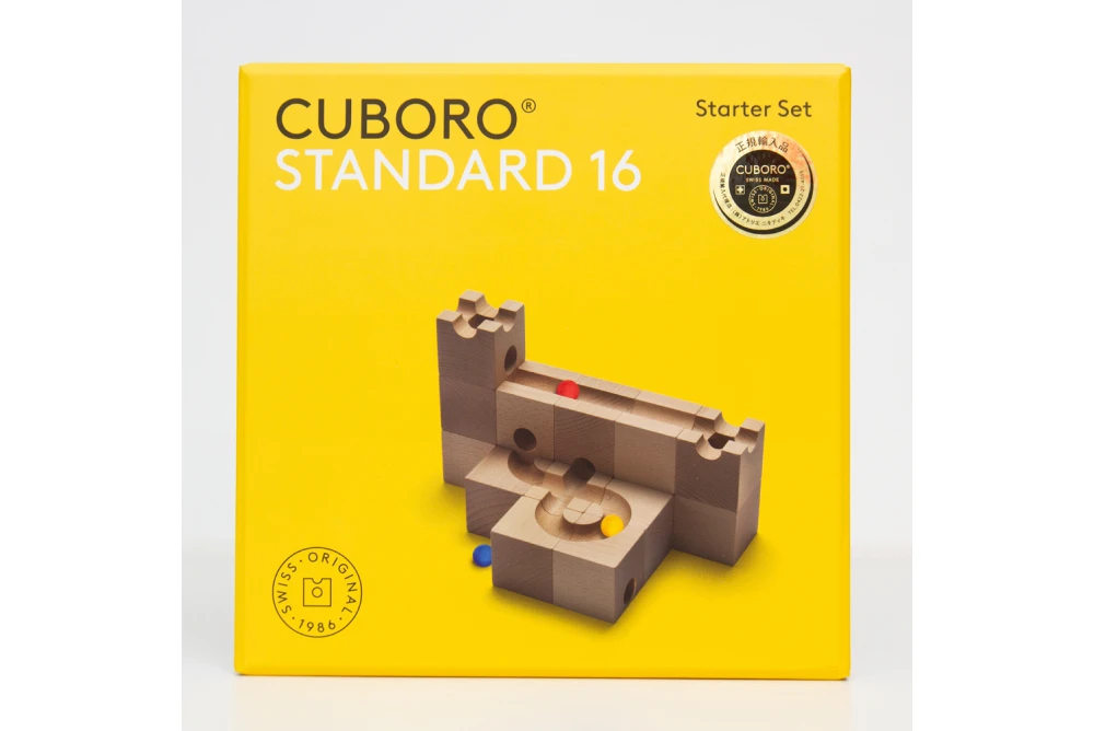CUBORO<キュボロ>は年齢を問わず、みんなが楽しみながら遊べる構成玩具です。ブロックを積み、きれいに掘られた溝を使ってビー玉を転がす遊び。集中力、創造力を育て、指先の訓練にもなります。遊びを通して三次元での構成力や論理的思考、次々と挑戦しようとする積極性も養えるおもちゃです。