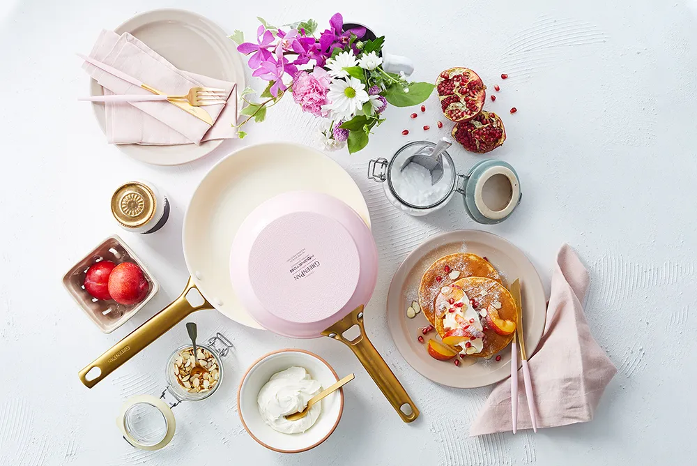 阪神梅田本店7階の「グッドキッチンカンパニー」では、キッチンにあるだけで華やぐ、そのまま食卓に出してもさまになるフライパンが登場。熱伝導に優れたこびりつきにくい仕様で、調理時間が楽しくなります。