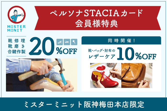 - ※特典はミスターミニット阪神梅田本店でのみご利用いただけます。