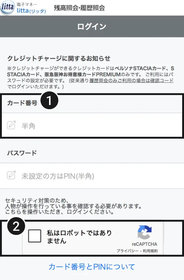 litta(リッタ)残高照会・履歴照会へログインの際は、下記内容をご確認のうえ、番号をご入力ください。